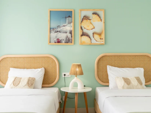 - 1 Cane Frame Bed 180cm or 2 Cane Frame Bed 120cm + Natural Oak Wood